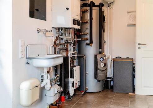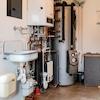 Im HWR ist ein Einbauschrank (s. Text oben) vorhanden, die Therme für die Gasheizung und der Wassertank.