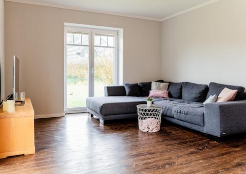 Der HWR bietet einen optimal aufgeteilten Einbauschrank und somit einen alltagstauglichen Übergang zur Küche. Die hochwertige Einbauküche ist ebenfalls im Kaufpreis enthalten. Im Wohnzimmer sorgen dunkle Designplanken für Behaglichkeit und Ruhe. Ein bereits vorhandener Schornstein nebst Kaminanschluss lassen keine Wünsche offen. Drei weitere Zimmer im Erdgeschoss lassen Platz für die ganze Familie und das eventuelle Homeoffice.