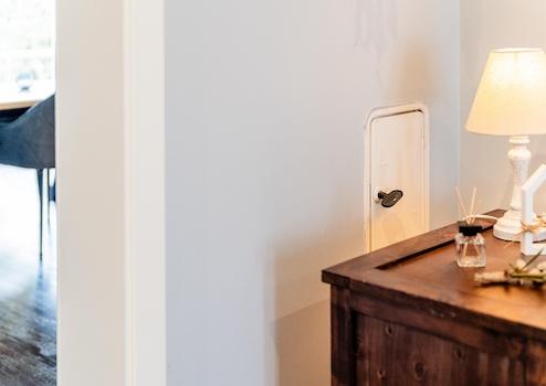 Ein Kaminanschluss und ein Schornstein erlauben die Aufstellung eines Kamins/Ofen.