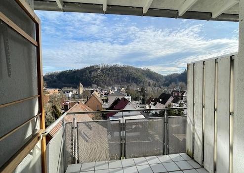 6) Balkon: südlich ausgerichteter Balkon mit Blick über die Stadt. Der Balkon ist überdacht und bietet genügend Platz zum gemütlichen Verweilen.