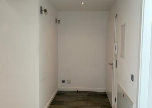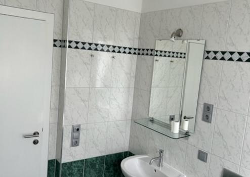 Der Wohnbereich wurde mit einem Laminatboden versehen, die Badezimmer und Küche wurden gefliest.