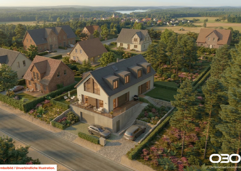 Das Grundstück wird bauträgerfrei und direkt von Eigentümer ohne Maklerprovision angeboten. Damit Sie sich bereits heute ein Bild von Ihrem zukünftigen Zuhause machen können, haben wir mögliche Bebauungsvarianten visualisiert.