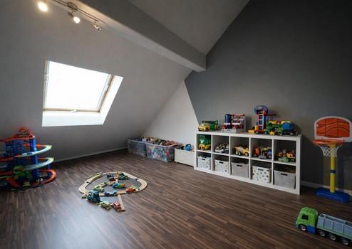 Das Dachgeschoss verfügt über zwei weitere Zimmer. Diese Ebene eignet sich hervorragend für Kinder, Gäste oder als kombinierte Arbeits- und Hobbyräume und schafft zusätzliche Flexibilität in der Nutzung.
