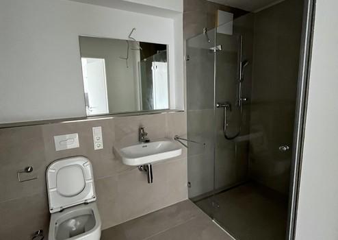 - Stilvolles Badezimmer mit moderner Sanitärausstattung und Duschabtrennungen