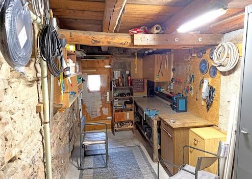 Ein weiterer Vorteil des Hauses sind die großzügigen Werkstattflächen sowie ein alter Gewölbekeller, welcher sich unter dem Wohnzimmer befindet. Diese bieten Hobbyhandwerkern viel Platz für Projekte, Lagerung und kreative Arbeiten. Gleichzeitig eröffnen sie Potenzial für einen späteren Ausbau, beispielsweise zur Erweiterung der Wohnfläche, für ein Atelier, einen Hobbyraum oder zusätzliche Nutzräume – je nach Bedarf und Vorstellung.
