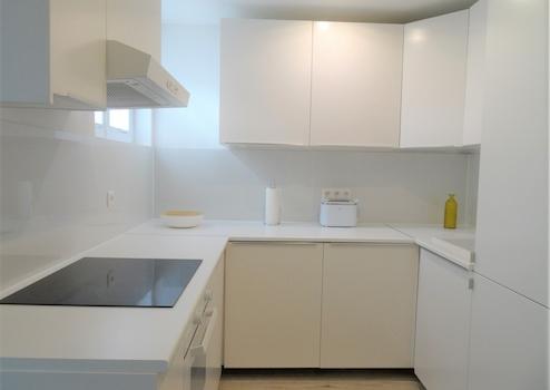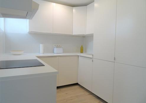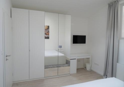 Design Vinylboden, moderne Badausstattung, moderne Einbauküche, Satelliten TV, schnelles Internet, volle Ausstattung bei möblierter Vermietung, TV-Geräte, Bettwäsche, Handtücher, Hausmeister, Dusche, Waschmaschine und Trockner,