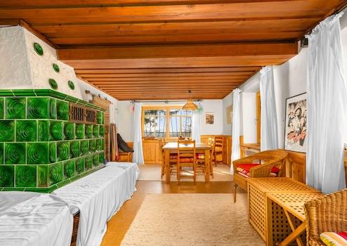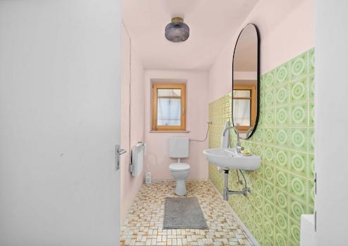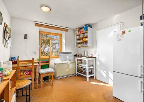 Im Haupthaus wurden bereits hochwertige Holz-/Aluminiumfenster eingebaut. Der Kachelofen mit gültiger Feuerstättenerlaubnis ist Mittelpunkt im großzügigen Wohnzimmer. Neben der hellen, funktionalen Küche, einem Badezimmer mit Wanne und Dusche ist auch ein Gäste-WC im Erdgeschoss untergebracht; zudem eine Werkstatt und ein Gewölbekeller zum Lagern von Speisen oder Wein. Im Dachgeschoss finden Sie drei helle Schlafräume sowie ein separates WC.