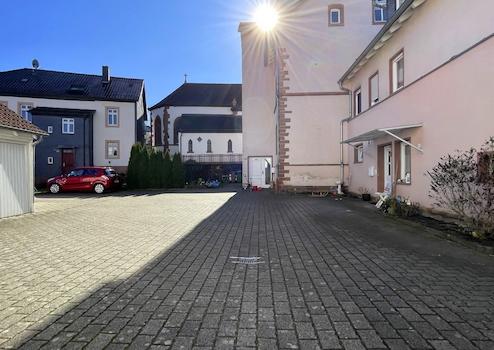 Wohn- und Geschäftshaus in der Gretenbachstr. 4 Zum Lift sind 5 Stufen zu gehen. Energieausweis: Gas, 145,1 kWh, Baujahr Wärmeerzeuger 2014