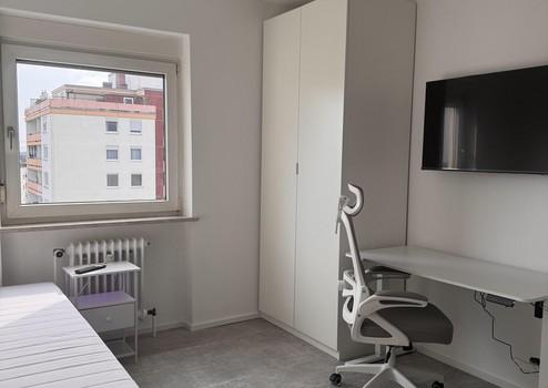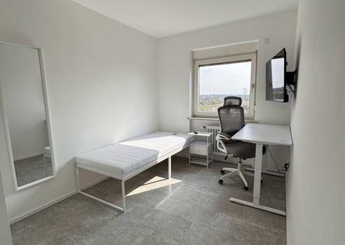 Vollmöbliert · Höhenverstellbarer Schreibtisch · 2× LAN-Anschluss (RJ45) · WLAN 250 Mbit/s · PAX-Kleiderschrank (1 m × 2,36 m) · TV (43" oder 58") · Bett mit Nachtisch
