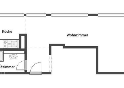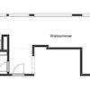 Sie betreten ein kompaktes 1-Zimmer-Apartment mit ca. 36 m² Wohnfläche. Der Grundriss ist klar gegliedert: Vom Eingangsbereich aus sind Bad und Küche direkt erreichbar, der Wohn- und Schlafbereich schließt sich als großzügiger Hauptraum an.