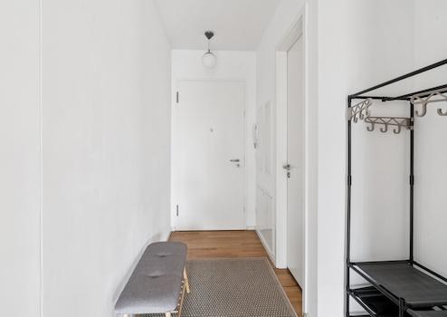 Der offen gestaltete Wohn- und Essbereich mit integrierter Einbauküche bildet das Zentrum der Wohnung und bietet direkten Zugang zur großzügigen Loggia. Von hier aus eröffnet sich ein freier Blick auf eine historische Backsteinkapelle und gewachsenen Baumbestand – ein Ausblick mit Seltenheitswert in dieser Lage. Die beiden weiteren Zimmer eignen sich ideal als Schlafzimmer, Kinderzimmer oder Homeoffice und lassen sich flexibel nutzen. Das Badezimmer ist mit einer Badewanne ausgestattet. Ein separater Abstell- und Hauswirtschaftsraum innerhalb der Wohnung sorgt für zusätzliche Funktionalität im Alltag.
