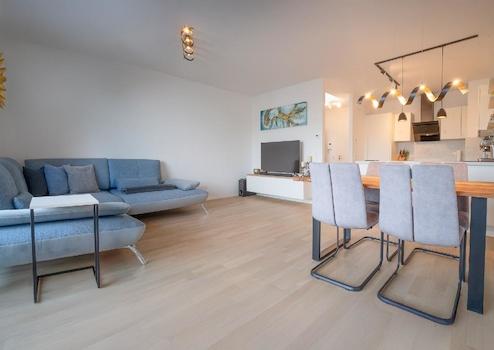 Auf 2½ Zimmern entfaltet sich ein lichtdurchflutetes Wohnkonzept mit klaren Linien, großen Fensterflächen und einer Atmosphäre, die sofort überzeugt. Die moderne Küche ist funktional und elegant zugleich, das schicke Bad rundet den hochwertigen Gesamteindruck ab.