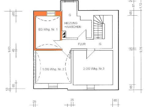 Es handelt sich um die EG-Wohnung mit ca. 62 m² mit Zugang zum Hof auf der Südseite. Dieser Hof steht allen Bewohnern des Hauses gemeinschaftlich zur Verfügung.