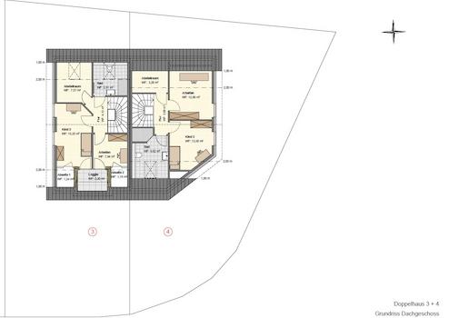 Das Dachgeschoss ist besonders vielseitig, hier sind 3 Zimmer möglich, ebenfalls bietet es einen großen Wohnraumraum oder Arbeitszimmer, welches den Zugang zur Dach-Loggia ermöglicht und sich ideal für entspannte Stunden oder kreative Tätigkeiten eignet. Ein zusätzliches Badezimmer mit Dusche und Dachflächenfenster sorgt für viel Licht. Ein Abstellraum rundet das Dachgeschoss ab und bietet zusätzlichen Stauraum.