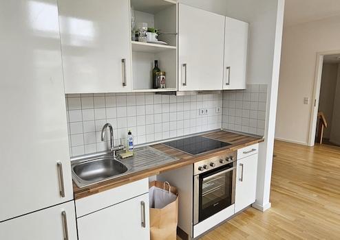 Die Wohnung liegt sehr ruhig im Seitenflügel und verfügt über einen Balkon mit Südwest-Ausrichtung. Bei der sehr gut gelungenen Sanierung ist eine pfiffige 2-Zimmer-Wohnung entstanden: