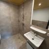 Zur weiteren Möblierung gehören eine Garderobe im Eingangsbereich, Spiegel, Waschbeckenunterschrank sowie eine Duschabtrennung im Badezimmer.