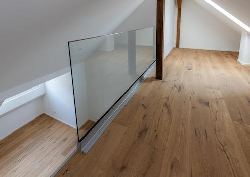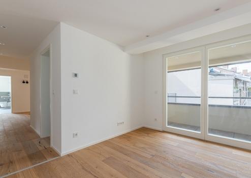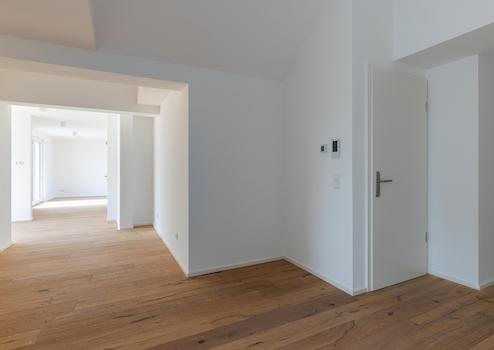 Neben der durchdachten Architektur überzeugt das Penthouse durch exklusive Ausstattungsmerkmale wie Parkettböden, Fußbodenheizung und Aufzug mit Direktzugang.