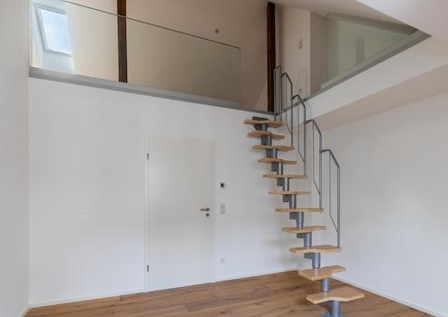 Das Highlight der Wohnung ist die weitläufige Dachterrasse, die einen unvergleichlichen Blick über die Dächer der Stadt bietet und zum Entspannen, Sonnenbaden oder geselligen Abenden mit Freunden einlädt. Große Fensterfronten sorgen für ein helles, freundliches Ambiente und schaffen nahtlose Übergänge zwischen Innen- und Außenbereich.