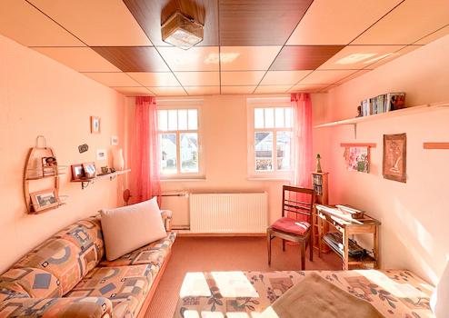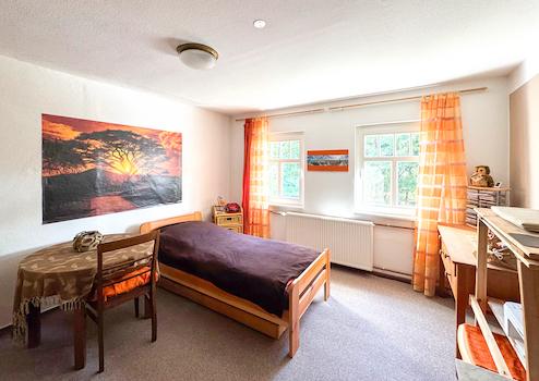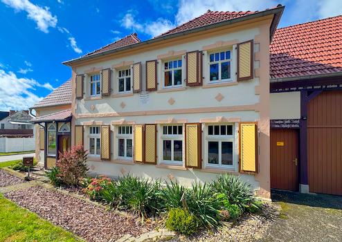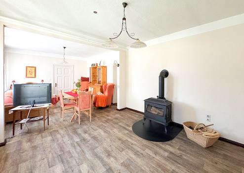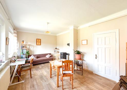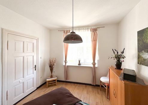 Traumhaft wohnen lässt es sich hier in gemütlichen Stuben wie Wohn-, Ess- und Schlafzimmer auf einer Ebene nebst Küche, Diele, Wirtschaftsraum und Tageslichtbad mit Wanne. Schön bequem zugänglich von der Straße und vom Hof aus. Im Dachgeschoss liegt unter jeder türmchenähnlichen Dachspitze ein gemütliches Wohnzimmer und auch im Südgiebel. Die verbleibende Fläche ist zum Bewohnen vorbereitet bzw. noch offener Bodenraum. Mit viel Liebe zum Detail wurde hier die Ursprünglichkeit bewahrt und auch zur Schau gestellt, welches wir als beruhigend empfinden.
