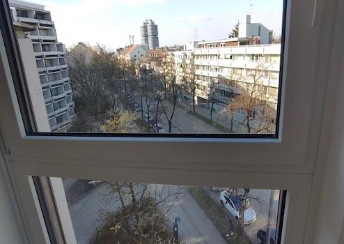 Die Wohnung liegt im 5. Obergeschoss (letzte Etage) eines Gebäudes mit Aufzug, was Ruhe und Privatsphäre gewährleistet. Vom Ostbalkon bietet sich ein Blick über die Straßenkreuzung hinweg auf den Luitpoldpark – ein seltenes Highlight in dieser zentralen Lage. Der Olympiapark ist in wenigen Minuten zu Fuß erreichbar.