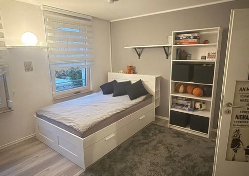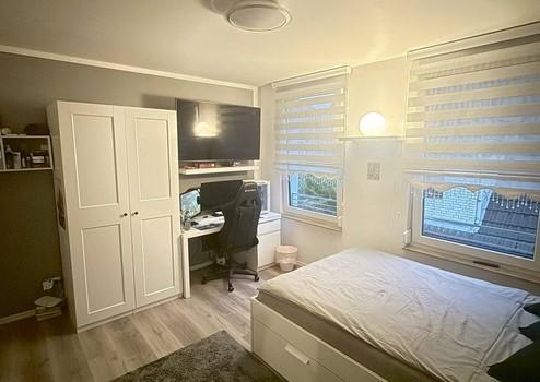 Das Obergeschoss dient als ruhiger Rückzugsbereich und bietet ein gut geschnittenes Schlafzimmer, ein Kinderzimmer, ein Badezimmer, einen zentralen Flur sowie einen praktischen Abstellraum. Die Wohnfläche auf dieser Ebene beläuft sich auf ca. 42,21 m² und ist optimal für den Familienalltag ausgelegt.