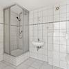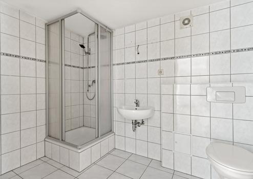 Das innenliegende Badezimmer verfügt über eine Dusche und einen Waschmaschinenanschluss.