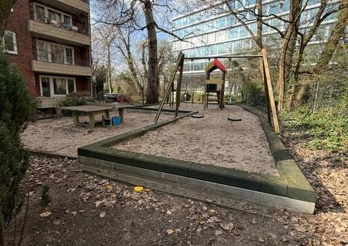 Hinter den Häusern der WEG befinden sich die großen grünen Gemeinschaftsflächen und ein Spielplatz. Eine freundliche Nachbarschaft lädt jährlich zum Sommerfest ein. Grillabende können auch auf der Gemeinschaftsfläche abgehalten werden.