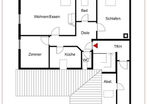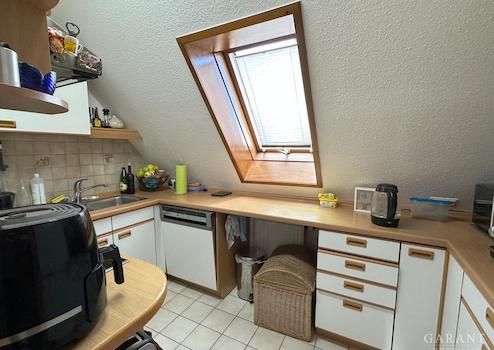 Der Grundriss der Wohnung ist sehr schön und die Wohnung punktet mit einem ca. 16 qm großen Hobbyraum im Dachspitz, der über eine hübsche Holztreppe im Wohnzimmer begehbar ist.