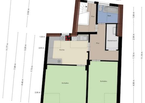 Im Dachgeschoss befindet sich eine weitere Wohneinheit mit rund 69 m² Wohnfläche, die derzeit vermietet ist und damit zur laufenden Einnahmesituation der Immobilie beiträgt.