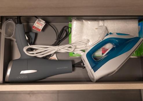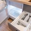 Die offene Einbauküche ist vollständig ausgestattet und verfügt über Kühlschrank mit Gefrierfach, Mikrowelle, Nespresso-Kaffeemaschine, Wasserkocher, Toaster sowie umfangreiches Küchenzubehör. Auch eine Waschmaschine ist bereits vorhanden.