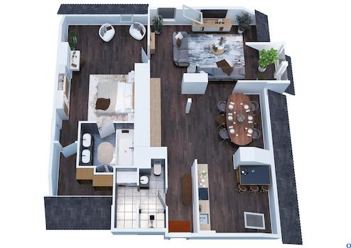 - zwei Zimmer, zwei Bäder, Küche, Abstellraum