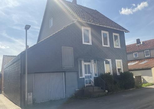 Freistehendes, teilunterkellertes, zweigeschossiges Einfamilienhaus mit Satteldach und Harzer Doppeldach mit Dachdämmung sowie linksseitig gebauter Garage und rechtsseitig mit Grundstückszufahrt. Gaszentralheizung ...