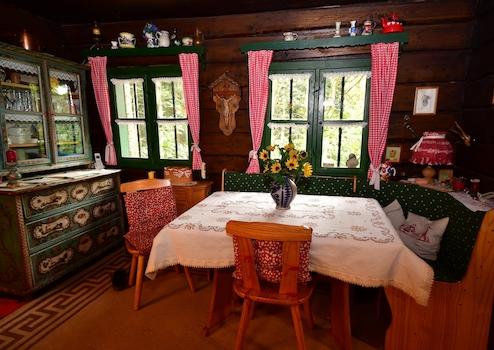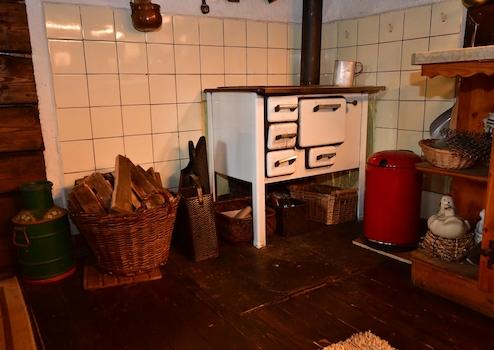 Kulinarik und wohlige Wärme Das Zentrum des häuslichen Lebens bildet die komplett möblierte Küche. Hier findet sich ein wahres Relikt echter bayerischer Lebensart: ein originaler Wamsler-Ofen. Wer in diesem Holzherd kocht, weiß, dass der Schweinsbraten hier noch genau so schmeckt wie früher – mit einer unvergleichlichen Kruste, die nur ein echtes Feuer hervorbringen kann. Für den schnellen Alltag ist zusätzlich ein moderner Elektroherd mit Ceranfeld sowie ein Kühlschrank vorhanden.