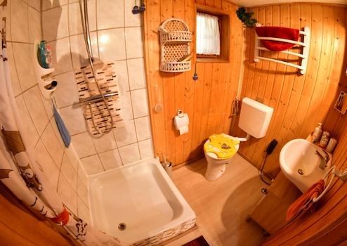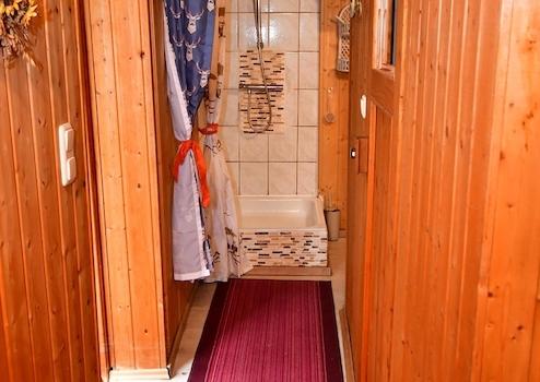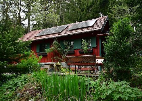 Wellness und Autarkie Nach einer ausgiebigen Wanderung zum nahen Gipfel des Hirschensteins gibt es nichts Schöneres, als in der hauseigenen Sauna zu regenerieren. Das Badezimmer verbindet urigen Charme mit wohltuender Entspannung. Energetisch ist die Hütte für die Zukunft gerüstet: Eine Solaranlage auf dem Dach speist sauberen Strom ein, während Sie über das vorhandene Telefon und Internet (Router) mit der Außenwelt verbunden bleiben. Dass die Telekom für diesen Anschluss eigens 18 Masten durch den Wald setzte, unterstreicht die Exklusivität dieser Lage.