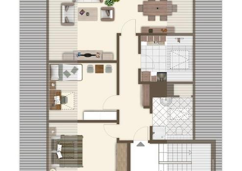 - Dachgeschoß: 66 m², 3 Zimmer, Küche, Bad (derzeit nicht vermietet)