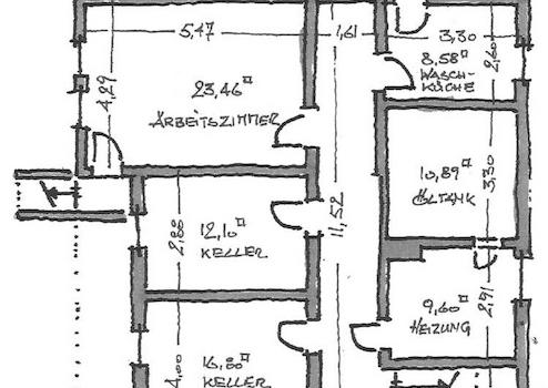 Das Gebäude ist voll unterkellert. Eines der Zimmer im Untergeschoß ist als Arbeitszimmer ausgestattet (23 m²).