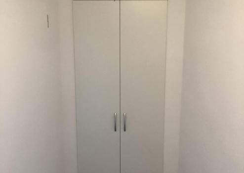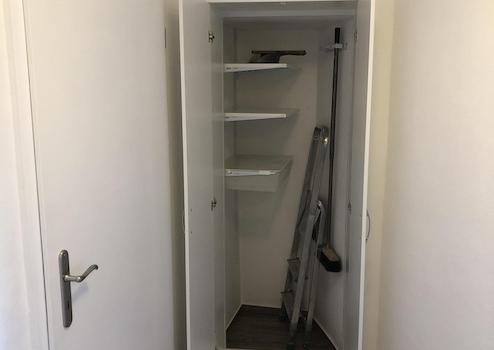 Der Flur verfügt über einen kleinen Einbauschrank für Staubsauger und Hausbedarf.