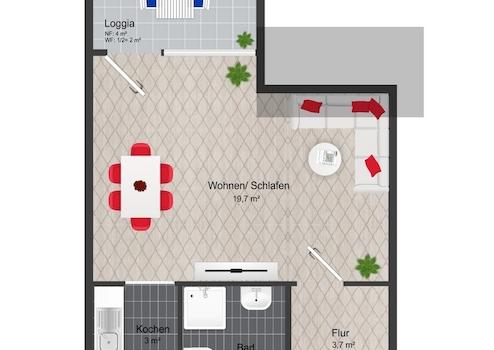 Diese gepflegte und lichtdurchflutete 1-Zimmer-Eigentumswohnung mit ca. 30 m² Wohnfläche befindet sich im Dachgeschoss eines ruhigen Mehrfamilienhauses und stellt eine hervorragende Gelegenheit für Kapitalanleger und auch für den Eigennutzer dar. Der großzügige Wohn- und Schlafbereich mit direktem Zugang zur sonnigen Loggia schafft eine freundliche Wohnatmosphäre und sorgt für eine nachhaltige Vermietbarkeit.