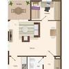 In beiden Wohnräumen ist Laminatboden verlegt, Bad und Küche sind gefliest.