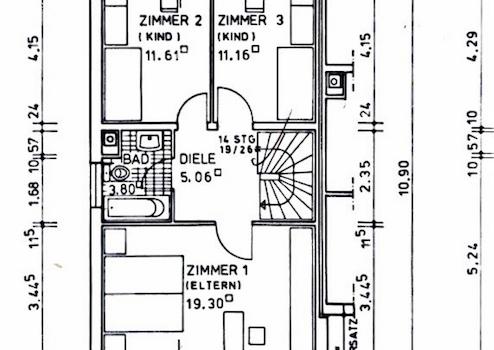 Im Obergeschoss befinden sich vier gut geschnittene Schlafzimmer sowie ein Badezimmer.