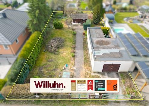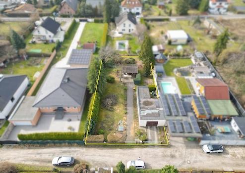 Aktuell ist das Grundstück mit einer großzügigen Garage sowie einem kleinen Gartenhäuschen bebaut. Die Garage kann bei Bedarf durch den Eigentümer zurückgebaut werden, sodass einer individuellen Neubebauung nichts im Wege steht.