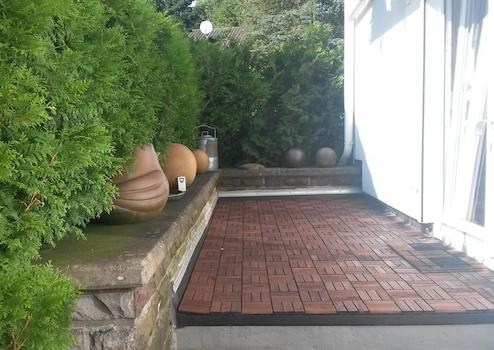 Im Garten lässt sich auf Wunsch ein Hochbeet aufstellen zum Anbau von Gemüse & Kräutern.