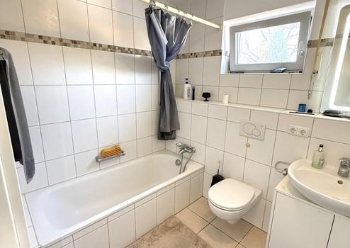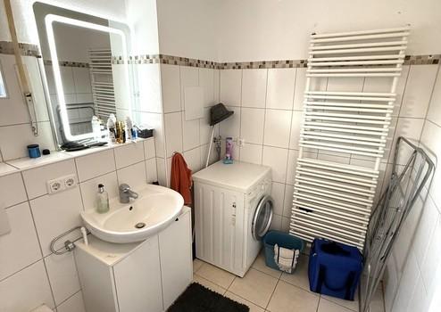 Das geräumige Badezimmer bietet genug Platz für eine Waschmaschine.