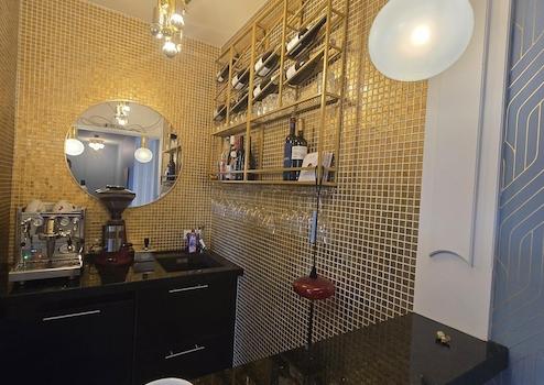 Vielleicht möchten Sie einen Espresso an der goldmosaikgefliesten Bar einnehmen.