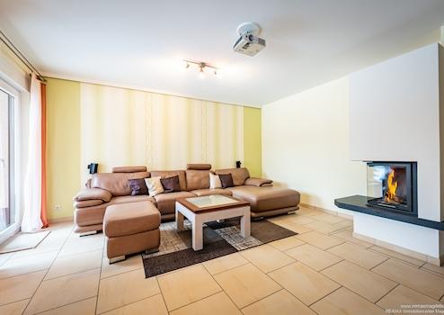 - Kamin, Spartherm mit schieb & klappbarer Scheibe und Frischluftzufuhr von außen im Wohnzimmer mit Öffnung zum Flur (Heizen des ganzen Hauses möglich),