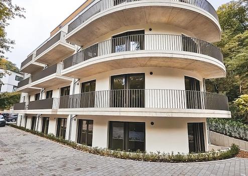 Die Architektur des Mehrfamilienhauses besticht durch organische Formen, harmonische Farben und Materialien. Der offen gestaltete Wohn- und Essbereich mit integrierter Einbauküche bildet das Herzstück der Wohnung und schafft eine moderne Wohnatmosphäre mit viel Platz für individuelles Einrichten.
