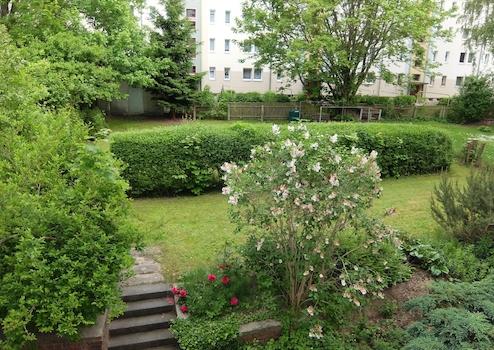 Die Wohnung befindet sich im Erdgeschoss ( Hochparterre) eines Mehrfamilienhaus.