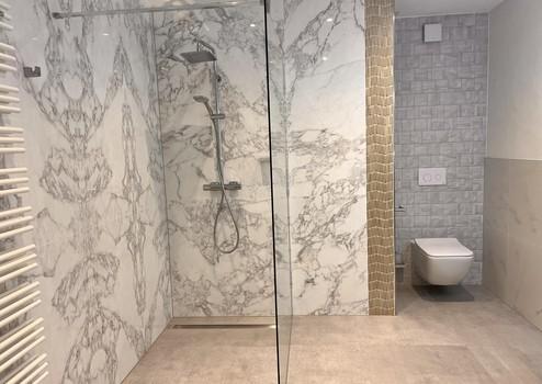 Duschbad, Einbauküche, Laminat, Fliesen