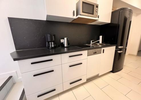 Besonders hervorzuheben ist das große, liebevoll renovierte und sanierte Badezimmer. Modern gestaltet und mit viel Platz ausgestattet, wird es schnell zu einer kleinen Wohlfühloase im Alltag. Außerdem zu Verfügung steht Ihnen eine schöne Küche, ausgestattet mit einem Mikrowellenofen, Kühlschrank, Herd und einer Spülmaschine.