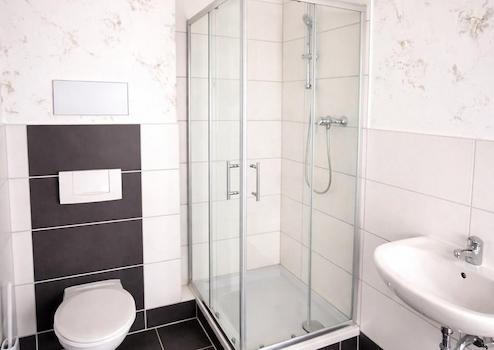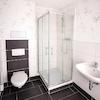 •Badezimmer mit Dusche und Waschmaschinenanschluss